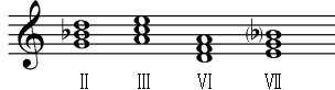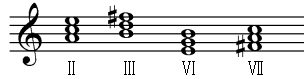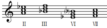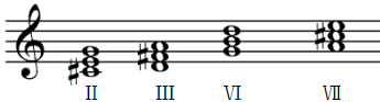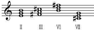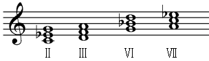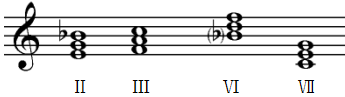 C、调名:c和声小调 音级:Ⅴ、Ⅶ、Ⅰ、Ⅵ、Ⅳ、Ⅲ