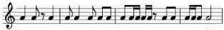 4、【单选题】请选择与下列音符时值相等的休止符。
