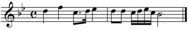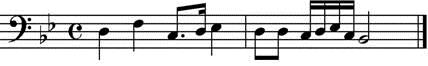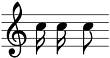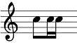 8、【判断题】符尾单独写时,写在符干右边,都朝向符头方向。如: