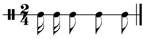 2、【单选题】下列选项中哪个是二分休止符的正确写法?