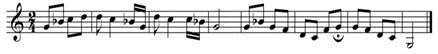 7、【单选题】请分析旋律,写出大、小调调式名称: