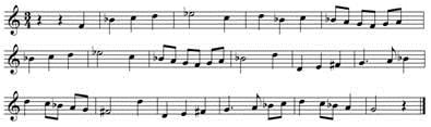 7、【单选题】将乐谱改记成F调圆号演奏的乐谱是: