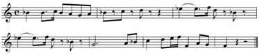 3、【单选题】将下列乐谱向上移高小三度重新记谱的是: